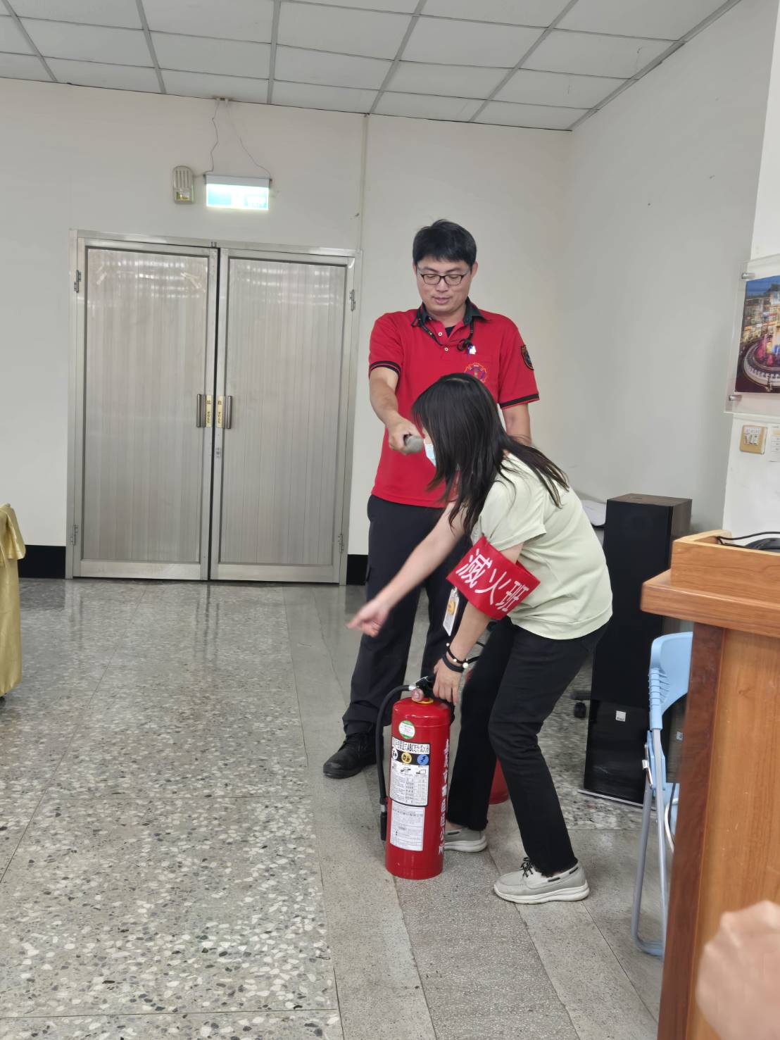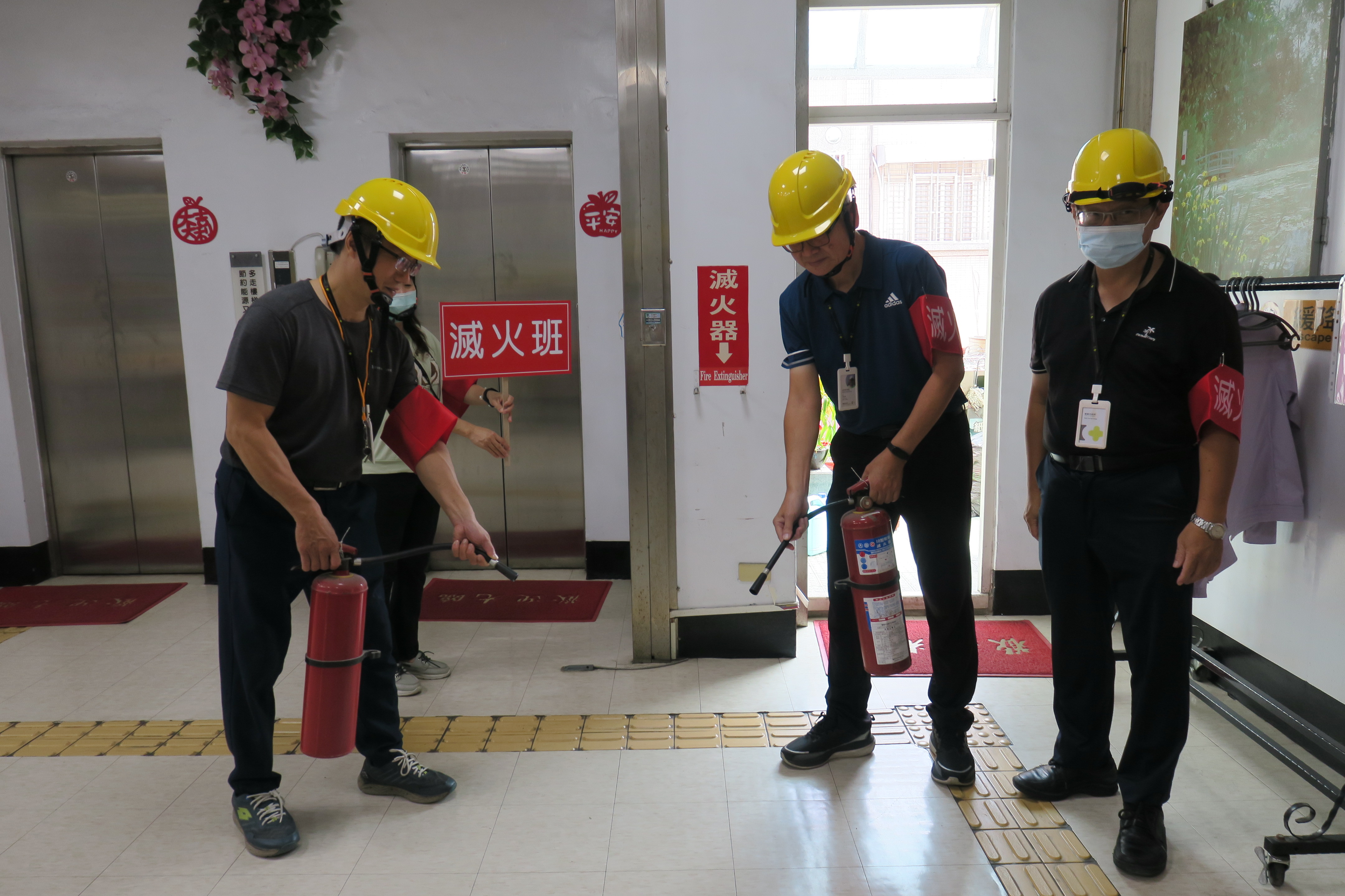 本次演練內容包含火災警報通報程序、初期滅火操作、緊急避難疏散及人員清點等項目。演練開始前,由林啟東教官詳細講解火災發生時的應變步驟與注意事項,強調「冷靜判斷、迅速應變」的重要性;接續指導同仁使用滅火器、消防栓及逃生器材的正確使用方式,教官指導滅火器正確使用並謹記步驟,重點口訣為『拉、瞄、壓、掃』,為「拉開插鞘」、「握住皮管、瞄準火源」、「壓下把手」及「向火源左右掃射」等步驟。並且實務演練讓參與演練的同仁能親自感受火災發生時的危急性及水帶、滅火器的正確使用方法;本所藉由實際演練讓同仁對災害防救有更深的認識與體驗。